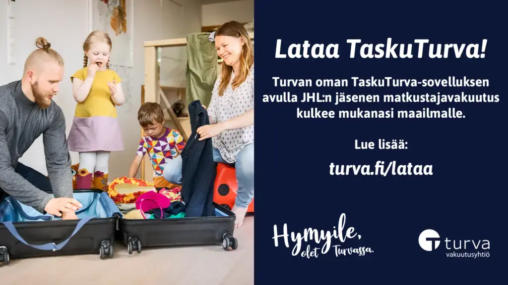 JHL:n jäsenenä saat Turvasta kattavan jäsenvakuutuksen, joka sisältää muun muassa vapaa-ajan matkustaja- ja tapaturmavakuutuksen sekä etätyövakuutuksen. Matkustajavakuutuksessa vakuutettuina ovat myös mukana matkustavat alle 18-vuotiaat lapset. Vakuutukset ovat voimassa alle 70-vuotiaille jäsenille.